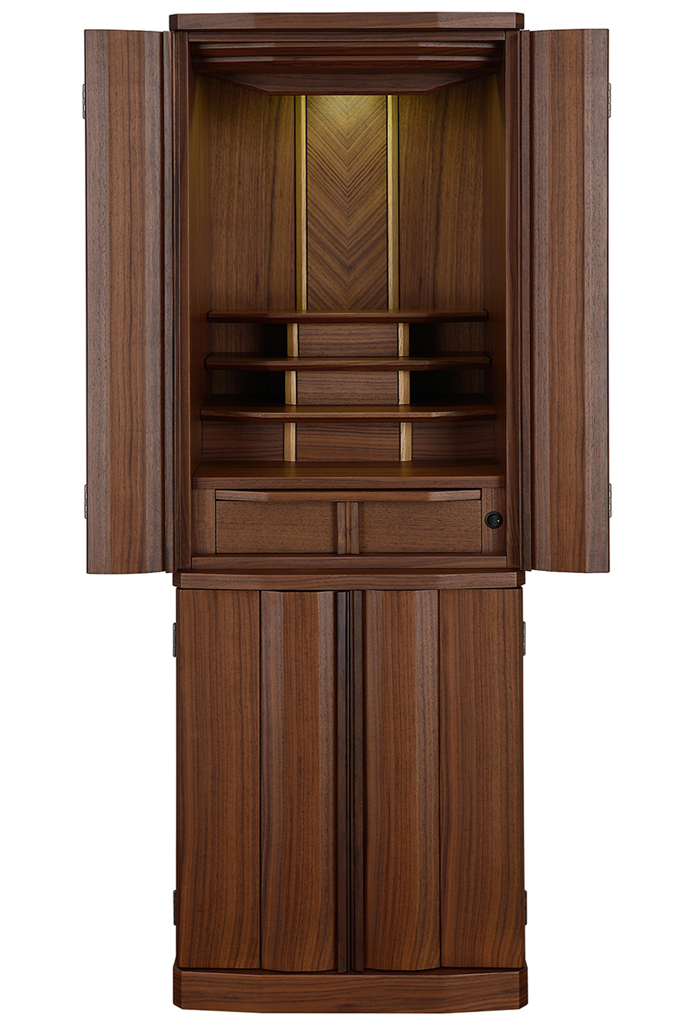 家具調仏壇とは、日本の都市型のライフスタイルに合うよう、家具調にデザインされた現代的な感覚の仏壇です。リビングルームに置いても違和感のない仏壇で、モダンですっきりしたデザインに特徴があります。